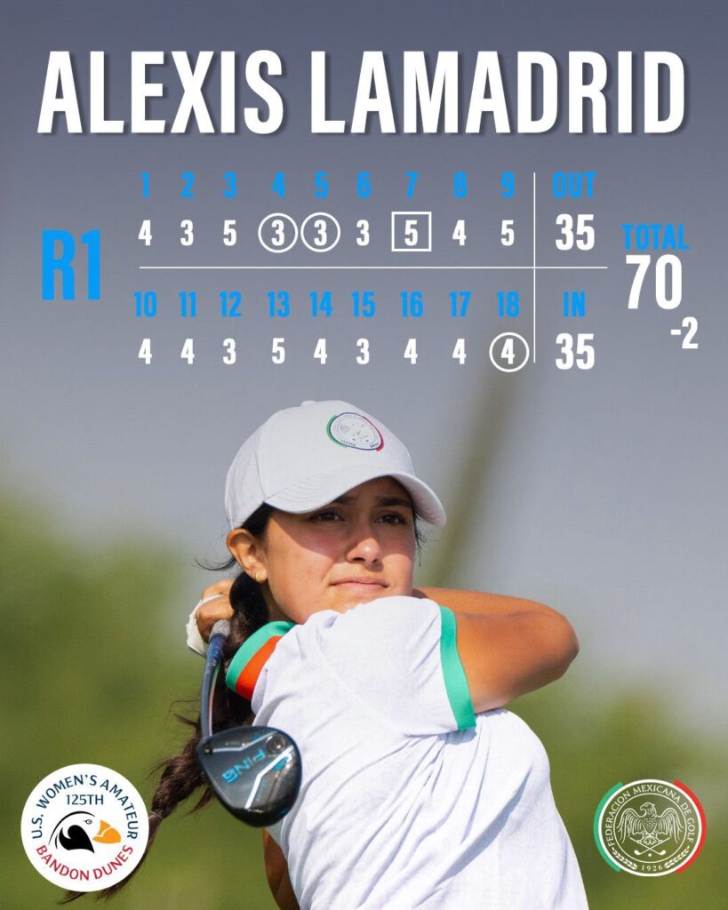 La también mexicana Alexis Yanet Lamadrid se quedó en 2-bajo-par, con tres pájaros y apenas un error para quedarse también entre las mejores 10 del tablero.