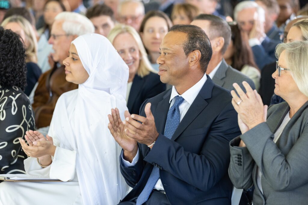 Woods y miembros del equipo ejecutivo de TGR Foundation y Cobbs Creek Foundation estuvieron presentes en la celebración, junto con el gobernador de Pennsylvania, Josh Shapiro, la alcaldesa de Filadelfia, Cherelle Parker, y el ejecutivo de PGA Tour, Len Brown.