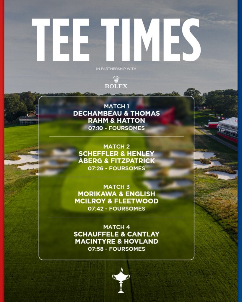 Después de los foursomes en la mañana, los equipos jugarán four-ball (mejor bola) en la tarde. Ese mismo ritmo se repetirá el sábado, antes de que los 12 jugadores de cada equipo compitan en los singles del domingo.