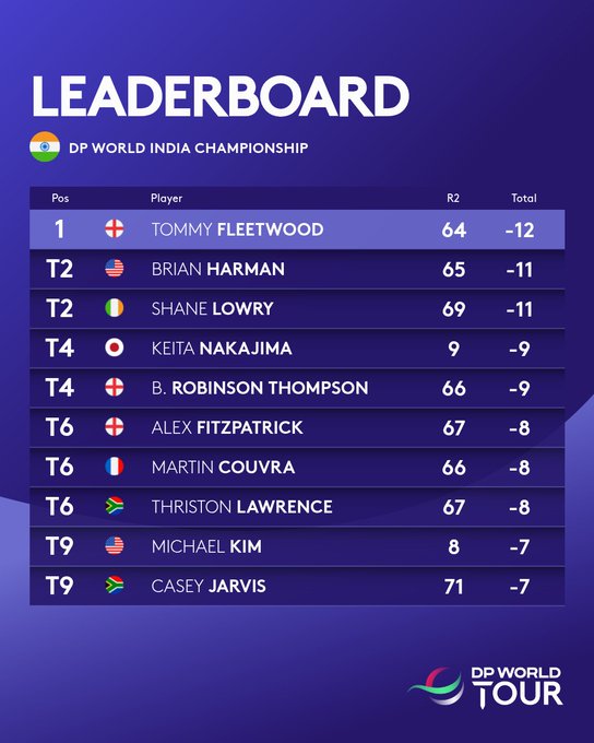 Tommy Fleetwood mantuvo su gran cierre de temporada con una ronda de 64 golpes (-8) para tomar el liderato en solitario al llegar a la mitad del DP World India Championship, mientras su compañero de Ryder Cup, Rory McIlroy, luchaba por mantenerse en la pelea este viernes.