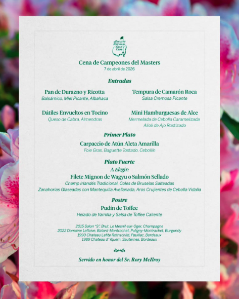 Conoce el Menú que presentará Rory McIlroy en la Cena del Masters